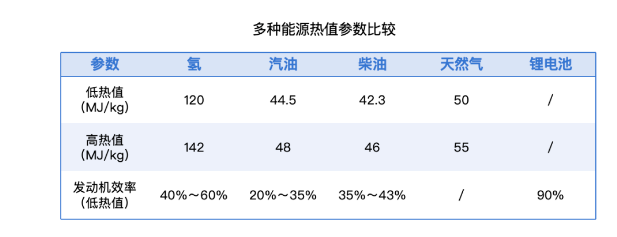 氢的高热值是142MJ/kg,是煤炭、汽油等化石能源的3-4倍。选取典型效率值换算,1kg氢用于燃料电池车辆时,大约相当于6.9L汽油、4.5L柴油或者18.6千瓦时电量的锂电池。这一优势让氢燃料车具备了与燃油车相当的使用体验,加氢3分钟,续航超700公里,解决了电动车充电慢、续航短的痛点。